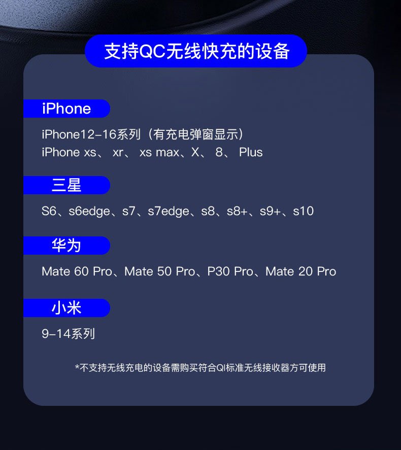 Supported Standard: Complies with Qi wireless charging protocol